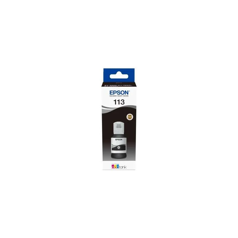 Garrafa de tinta preta original OEM para impressoras EcoTank que utilizam tintas Epson 113, para reabastecer os tanques da sua impressora Epson Ecotank com exatamente a mesma tinta original que veio com a impressora quando você a comprou.